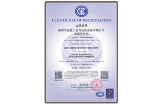 深圳市遠望自動化設備公司擁有完備的精密機械設備制造能力,形成了一套完善的制造生產工藝。通過了ISO9001質量體系、IOS14001環境體系、ISO45001安全體系認證,獲得相應證書;公司下設機械制造部、電工部、電子部、焊接部、裝配部、質量部,其中質量部具有高度的權限,配備有先進的測量機、光學投影儀、顯微鏡等設備,對所有生產環節進行嚴格的質量檢測與監控,擁有一票否決權。